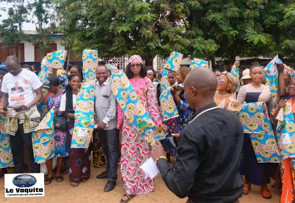 Cérémonie de distribution des pagnes aux femmes par les amis du Prof Ngubo Selemani Longange. ©Ph., Le Vaquita, mars 2026