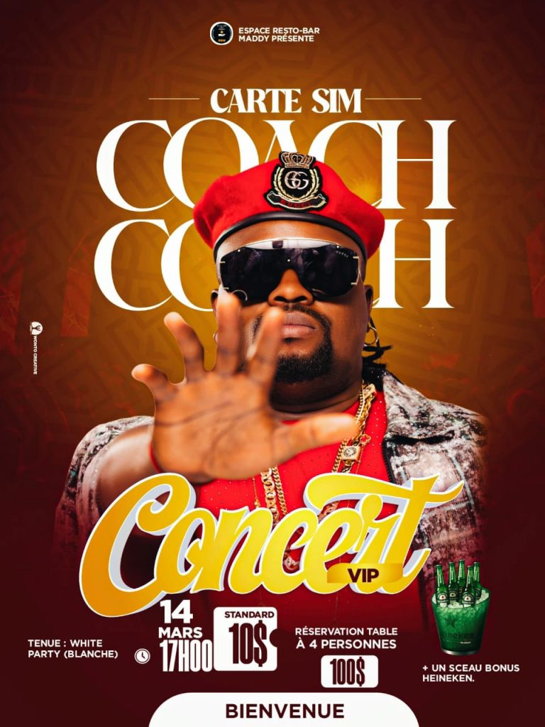 Artiste Carte Sim Coach, affiche du concert VIP du 14 mars